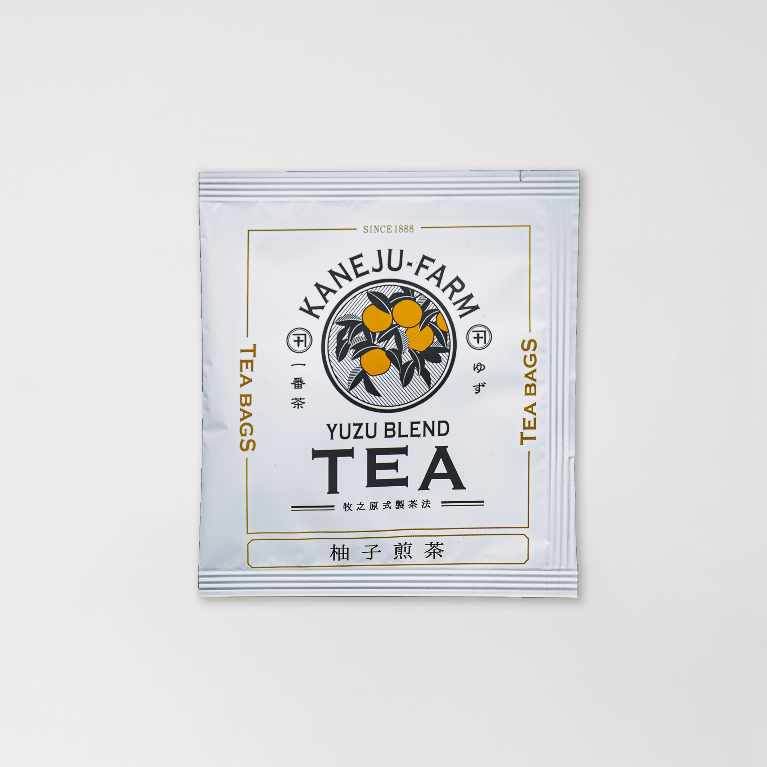 カネ十の柚子煎茶は国産柚子の香りをより引き立てるために、低カフェイン茶葉を使用。茶葉本来の旨味を残しつつ、苦味、渋味を抑えることで、柑橘の爽やかさを感じられる一杯になりました。低カフェインなので就寝前にもおすすめです。